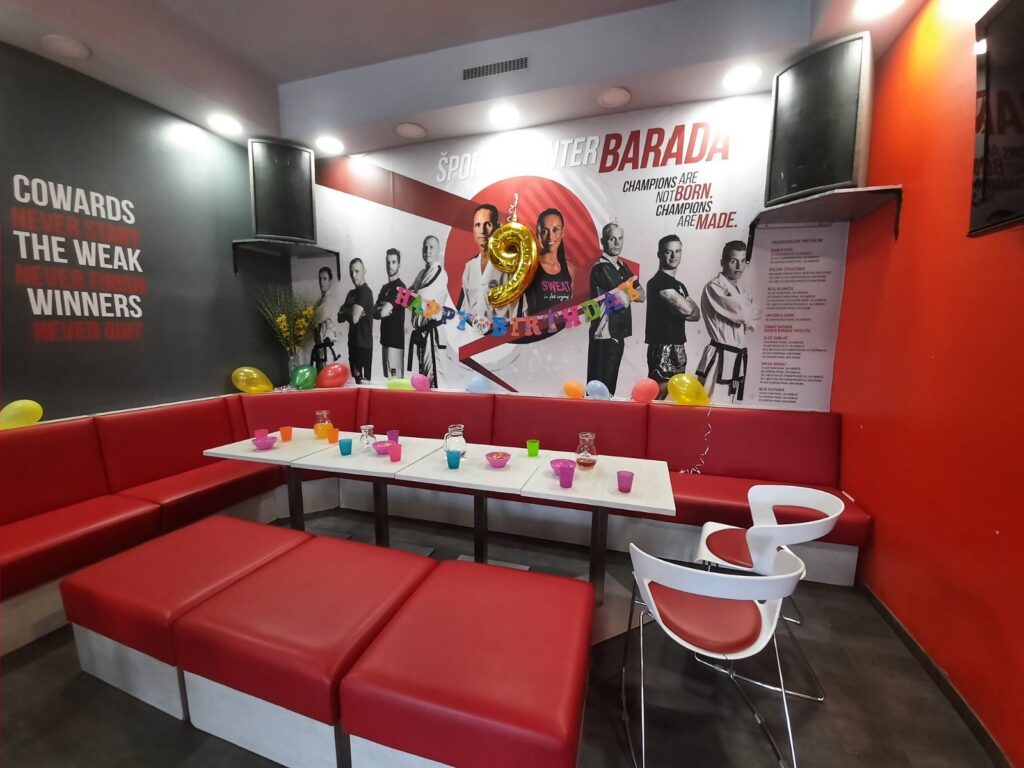 ŠPORTNI CENTER BARADA pravi naslov za vas. Naši animatorji poskrbijo za pester športni program in odlično pogostitev za slavljenca in njegove prijatelje. V tem času ste starši vljudno vabljeni, da se udobno namestite v našem gostinskem lokalu in uživate v prostem času, ki ga imate v času praznovanja na voljo.